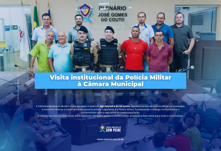 A Câmara Municipal de Sem-Peixe recebeu a visita do Sargento Dayrell e do Soldado Lucas. Visando reforçar a importância da parceria entre o Legislativo e a Polícia Militar.