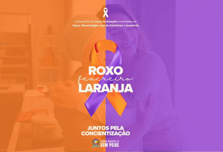 Em fevereiro as cores roxo e laranja, visam a conscientização sobre a doença de lúpus e fibromialgia, mal de alzheimer e leucemia.